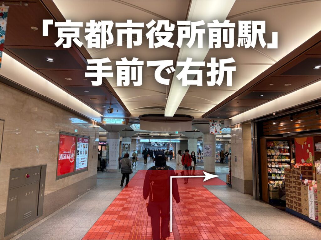 地下鉄東西線:「京都市役所前」駅下車 改札を出てすぐ