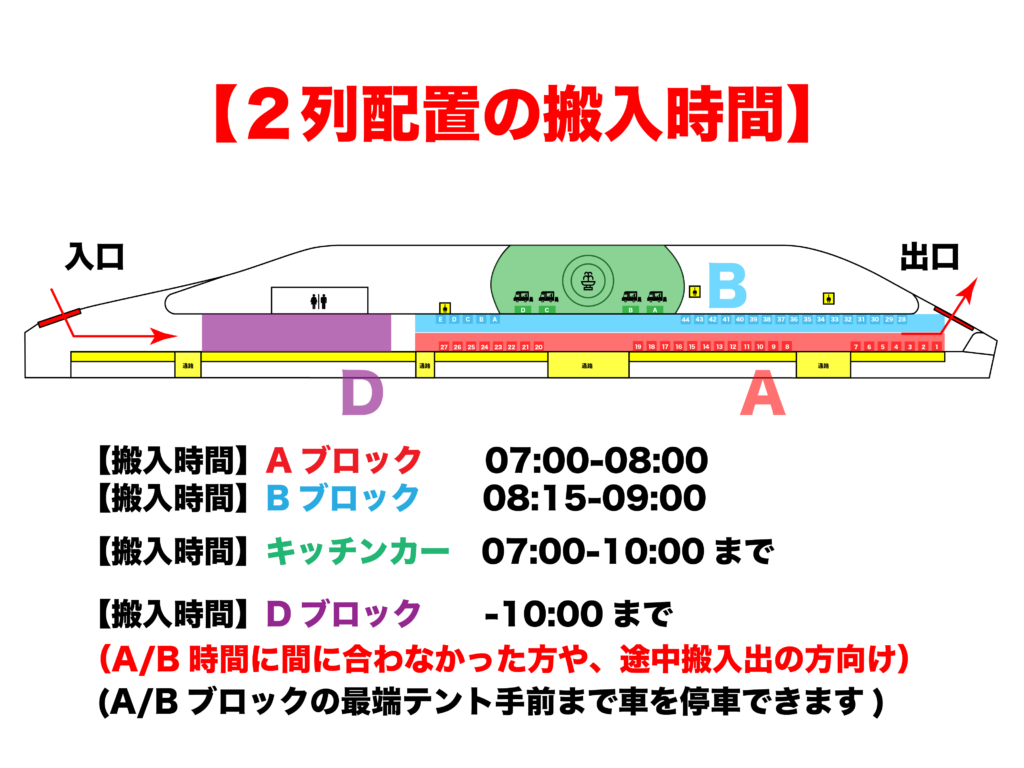 イベント終了後は、必ず荷物を積み込むだけの状態にしてから車を取りに行ってください。