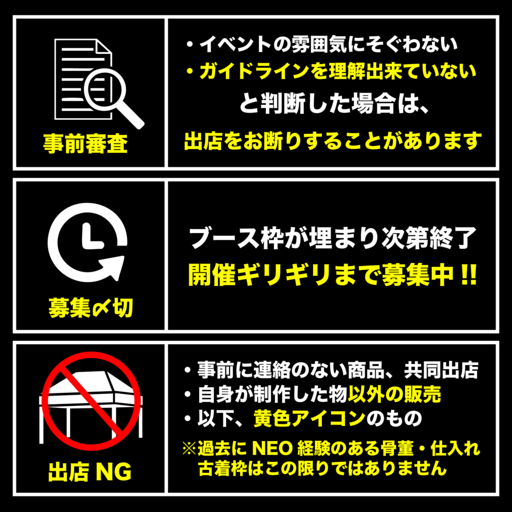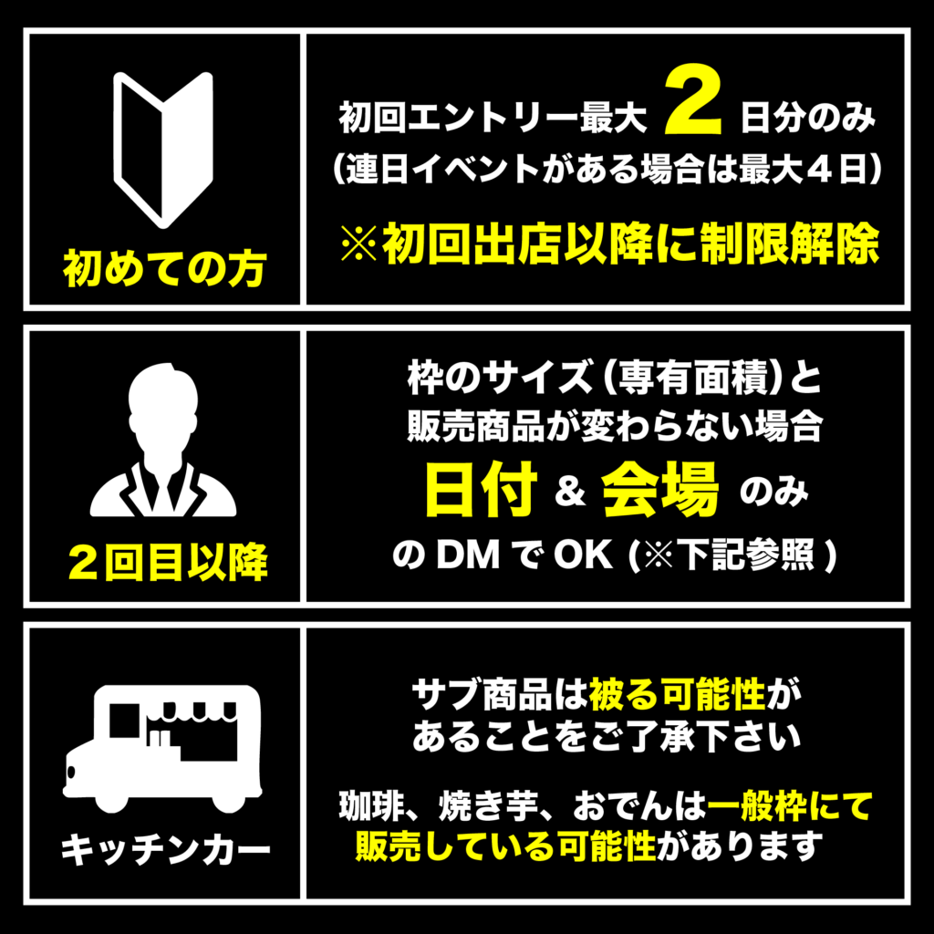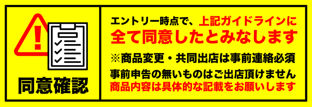 出店希望の方は、下記ガイドラインを熟読した上で、規定に沿った形でのエントリーをお願いします。