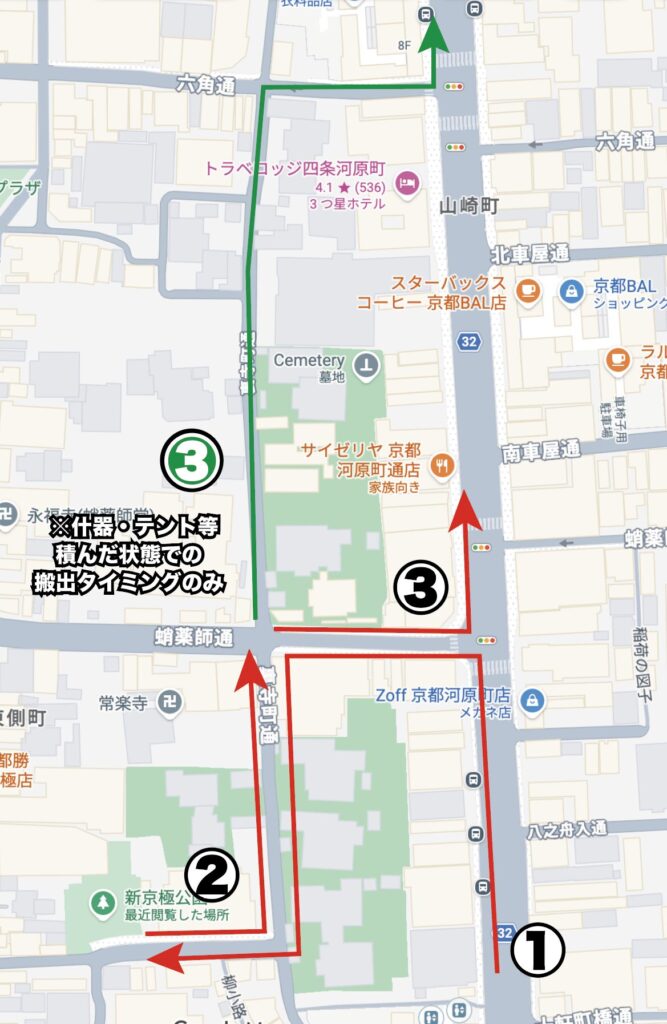 ただし、搬出時、新京極公園から出るタイミング(完全撤収時)のみ、