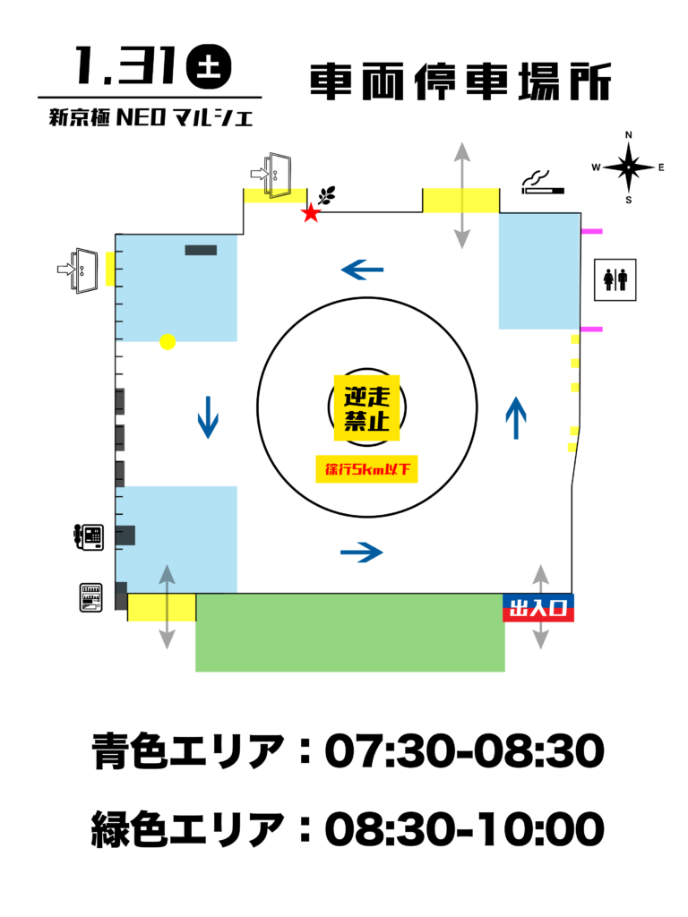 緑色③の六角通りから撤収をお願いします。(一方通行ではありませんのでご安心下さい)