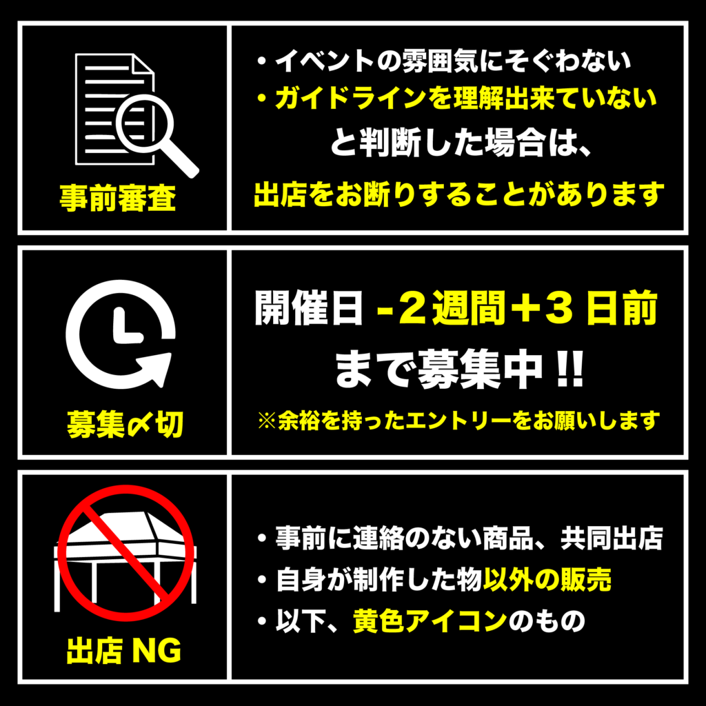 出店希望の方は、下記ガイドラインを熟読した上で、規定に沿った形でのエントリーをお願いします。